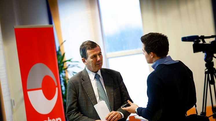 Konsernsjef Dag Mejdell summerer opp hovedpunktene for halvåret, mens konserndirektør