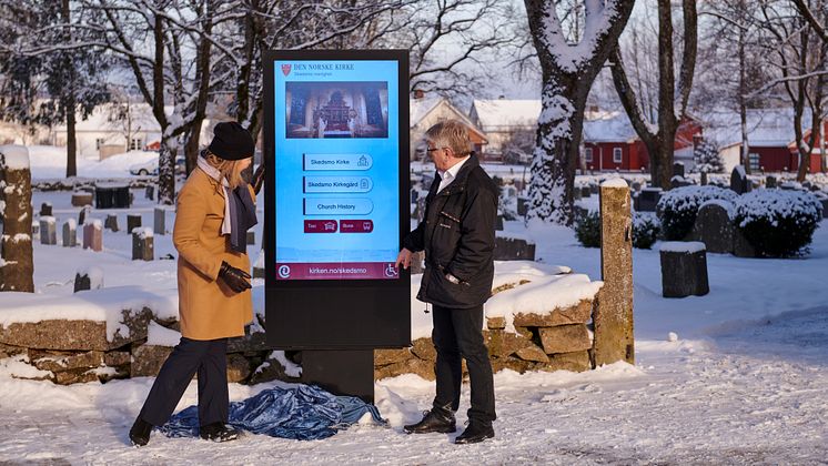 Avdukingen av Procon Digital KirkeVert på kirkebakken utenfor Skedsmo kirke ble foretatt av sogneprest Anne Borgen og daglig leder i Procon Digital, Tor-Arne Lie Jensen