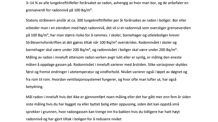 Radon forekommer naturlig i bakken når det kommer fra uran som brytes ned. Radon påvirker for det meste hus som har kjeller, eller som på andre måter er direkte forbundet med bakken.