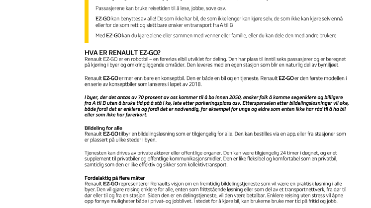 Ny elektrisk konseptbil fra Renault, EZ-GO er presentert i Geneve