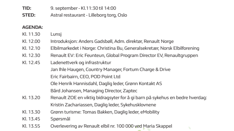 Begrenset antall plasser. Påmelding sendes til stine.fratras@renault.no