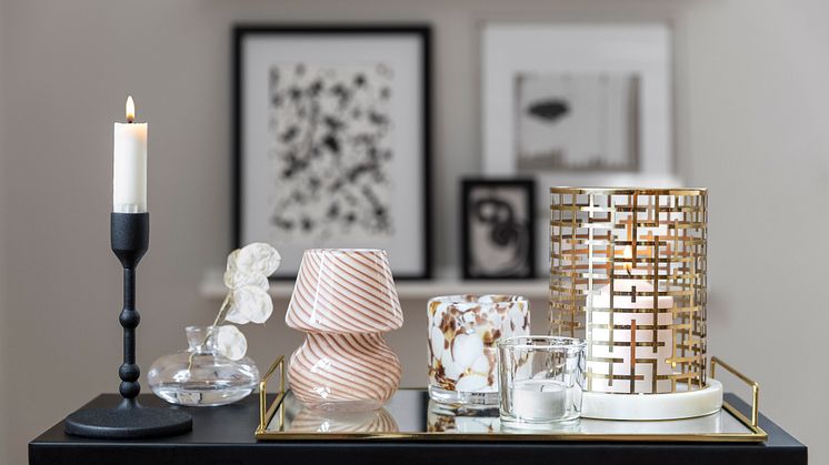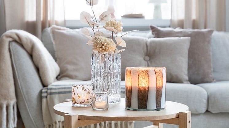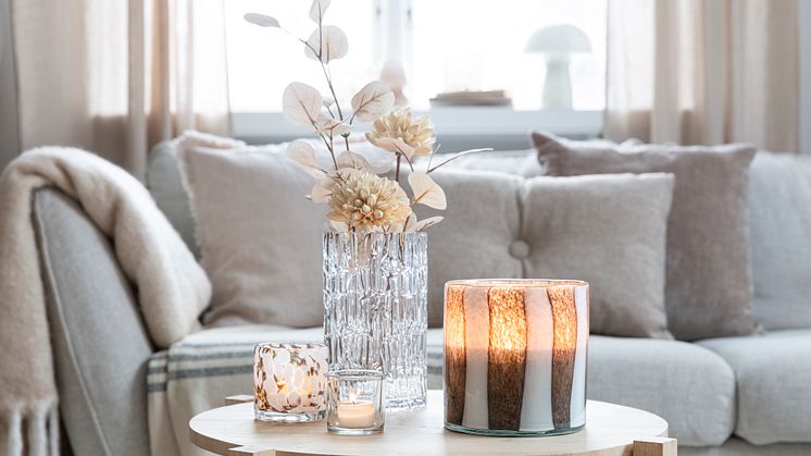 Nyhetene blant lyslykter, duftlys, vaser og krukker er mange og gjør det enkelt å lage personlige stilleben med små grep. Den populære lyslykten, Cleo i glass, får selskap av flere farger. Blant nyhetene er også søte sopplyslykter, perfekte å kombinere med lampen Reykjavik, som kommer i nye farger til høsten.