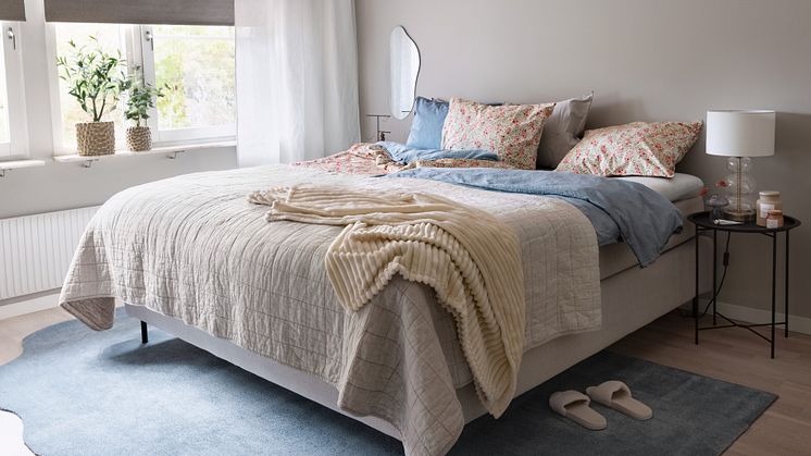 På baderommet finnes vårens farger på håndklær, dusjforheng og baderomsmatter. På soverommet utvides sengetøyserien Vida med flere nye farger. Nyheten Wilma, et sengesett med silkefølelse, er spådd til å bli en ny favoritt.
