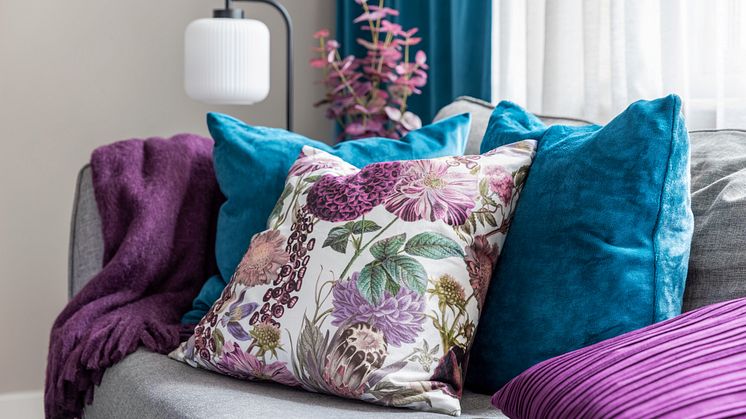 På mønsterfronten finnes alt fra små ruter til blomster og påfugler. Tekstiler med struktur blir et fint innslag, og fløyel gjør comeback på både putetrekk og gardiner.