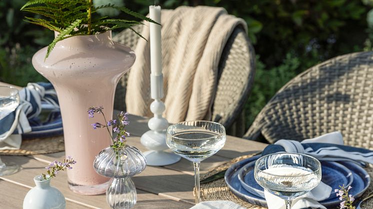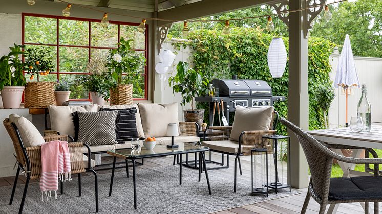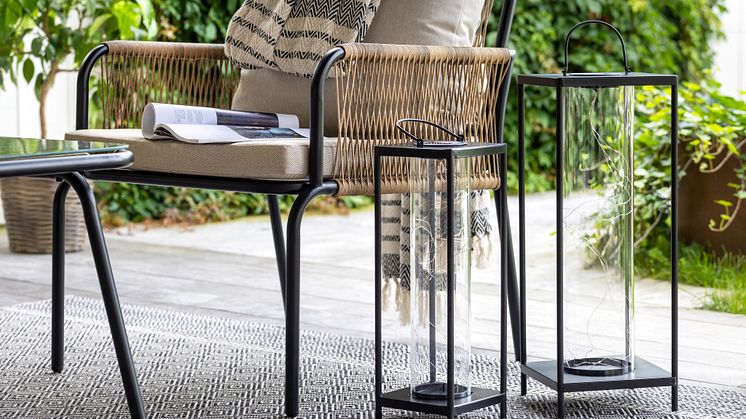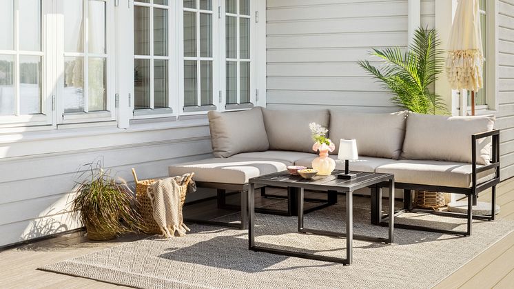 Å gi balkongen eller uteplassen et løft trenger ikke å koste skjorta. Blant Rustas sommernyheter finner du krukker, parasoller, puter, hengekøyer og solcellebelysning som gjør det enkelt å fornye med et lite budsjett.