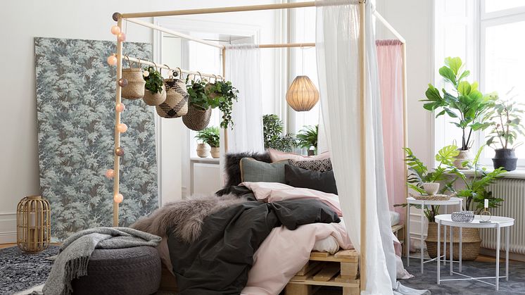 Rusta fortsetter sin satsning på interiørprodukter og utvider sortimentet som gjør det lettere å fornye alle rom i hjemmet. På tekstilfronten får vi se en stor variasjon innenfor materialer, alt fra fløyel til washed cotton.