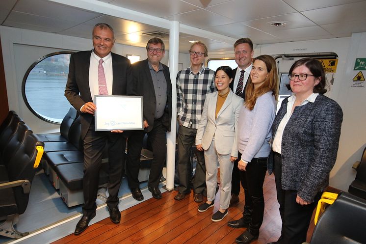 Sigvald Løyning, konsernsjef i Norled, adm.dir. i Ruter, Bernt Reitan Jenssen, Marius Gjerset i Zero, byråd for miljø- og samferdsel, Lan Marie Berg, Nesodden-ordfører Truls Wickholm, leder for hovedutvalget for samferdsel, Solveig Schytz og fylkesordfører i Akershus, Anette Solli.