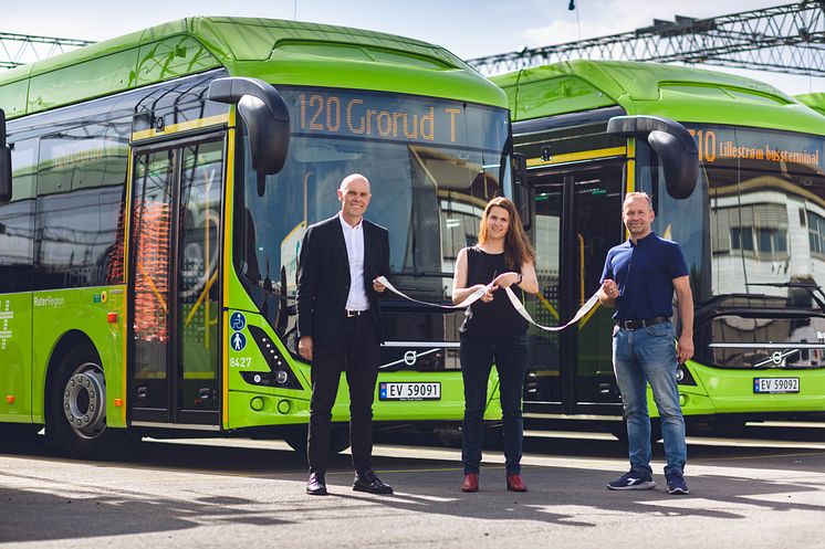 Snorre Lægran, plandirektør i Ruter, Solveig Schytz, leder av hovedutvalg for samferdsel i Akershus fylkeskommune og Henning Bethelsen som er teknisk direktør i Norgesbuss.