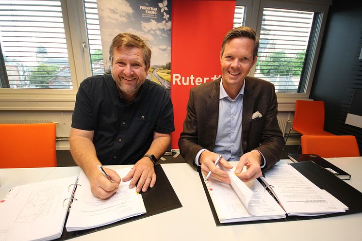 Bernt Reitan Jenssen og Philipp Engedal signerer kontrakten på linje 25.