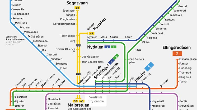 Linje 4: Kjører Bergkrystallen – Stortinget og Nydalen – Vestli