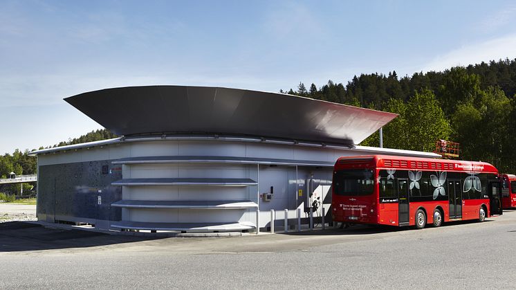 Hydrogenstasjonen står inne på et bussanlegg og brukes kun av opplært personell.