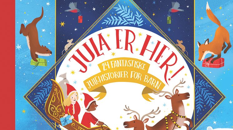 Totalt er det 24 bidrag i denne nydelege gåveboka, m.a. dikt, teikneserier, vitser og forteljingar. Jula er her! gir glede til heile familien gjennom heile desember. Bidraga er skrivne både på nynorsk og bokmål.