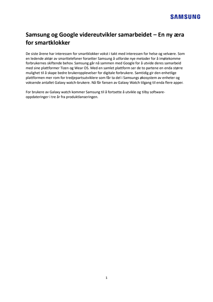 Samsung går nå sammen med Google for å utvide deres samarbeid med sine plattformer Tizen og Wear OS. Med en samlet plattform ser de to partene en enda større mulighet til å skape bedre brukeropplevelser for digitale forbrukere.