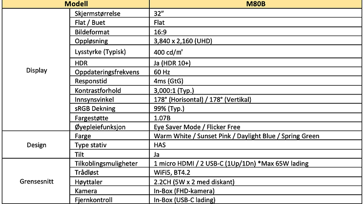 Samsung Smart Monitor M8 kan forhåndsbestilles i Norden fra midten av april, med veiledende pris fra 8 990 NOK.