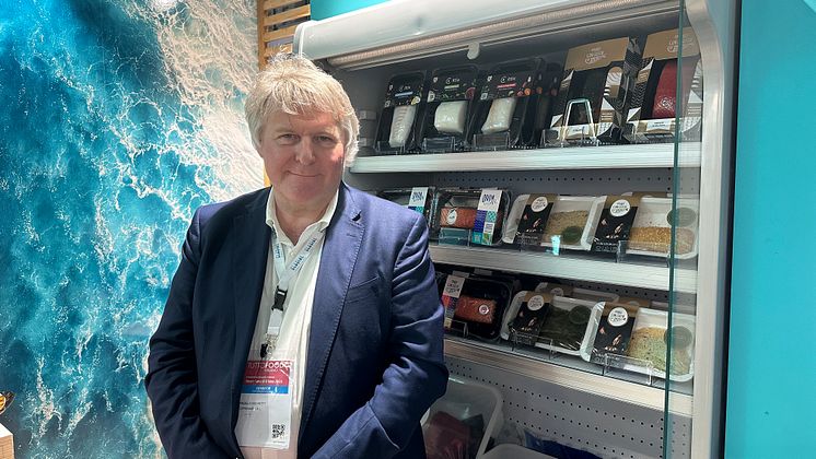 Angelo Nichetti i Copromar viser frem et bredt utvalg av ferdiglagde sjømatretter
