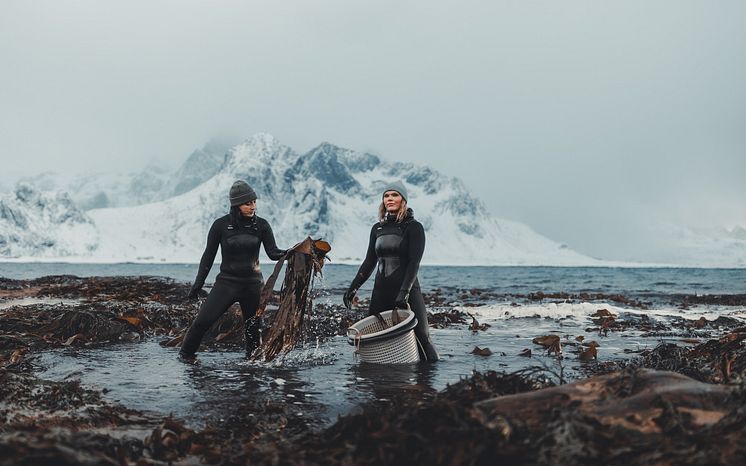 Tamara Singer (til venstre) og Angelita Eriksen i Lofoten Seaweed sørger for at norsk tang og tare setter prikken over i- en på skreimåltidene som skal friste tyskerne i årets skreikampanje.