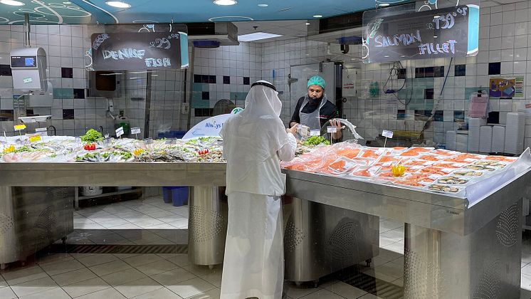 Norsk laks i fiskedisk i Riyadh