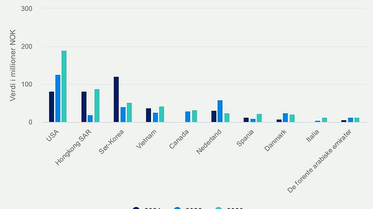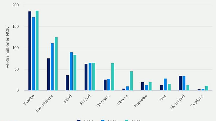 • Juli 23 10 største vekstmarkeder for laks hittil i år
