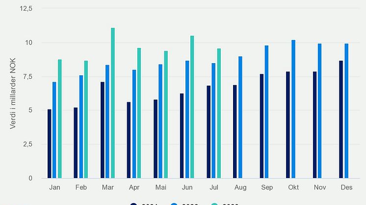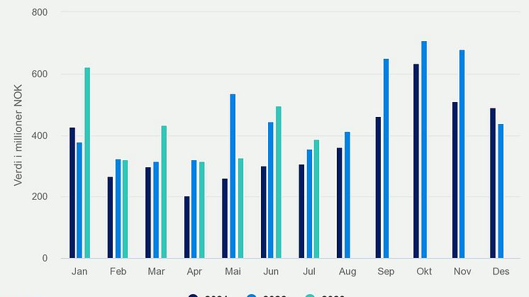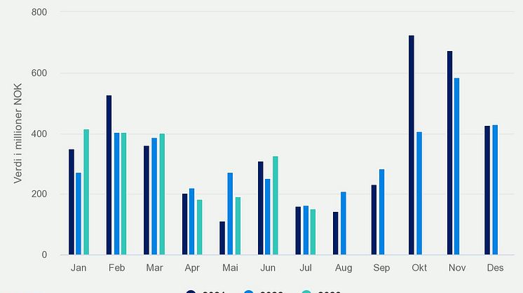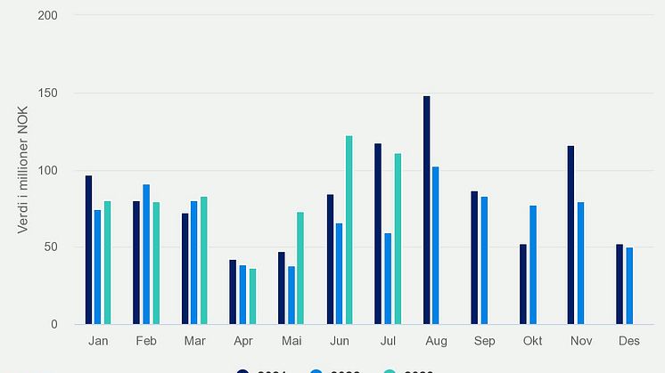 • Juli 2023 Verdi av norsk sildeeksport per måned