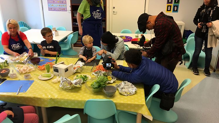 Thailandske journalister lot seg imponere av de norske barnas interesse for sjømat og matlaging da de besøkte en barnehage på Sotra denne uken.
