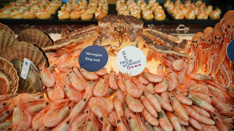 Levende norske kongekrabber, og en kjøledisk med fersk snøkrabbe, brunkrabbe, kamskjell, sjøkreps og reker var derfor trekkplaster for mange av de rundt 15 000 besøkende på messen.