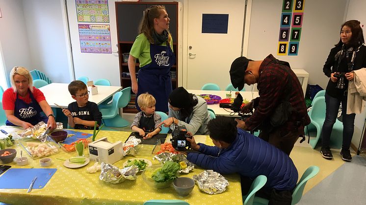 Sjømatrådet har vært i Bergen og Oslo med en gruppe journalister fra Thailand for å lære mer om den norske sjømaten denne uken. Ett av høydepunktene var da gruppen besøkte Havhesten barnehage på Sotra og fikk servert lunsj som barna laget selv. Barnehagen er med i Fiskesprell, et program som kurser skole og barnehageansatte i hvordan få barn til å spise mer sjømat.
