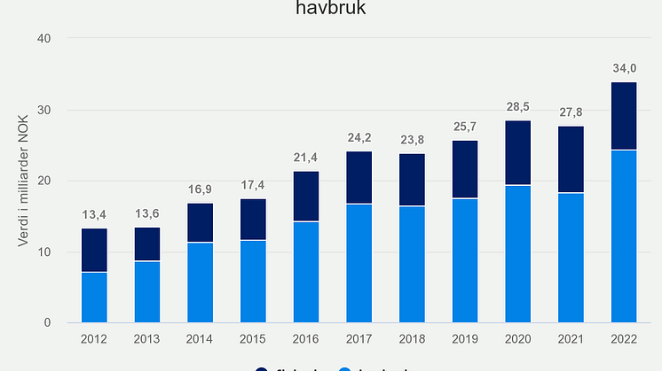 Til tross for den spente verdenssituasjonen, har eksportverdien av norsk sjømat aldri vært høyere i et første kvartal enn i 2022. I årets tre første måneder eksporterte Norge sjømat for 34 milliarder kroner. Det er en verdivekst på 22 prosent, eller 6,2 milliarder kroner, målt mot første kvartal i fjor.