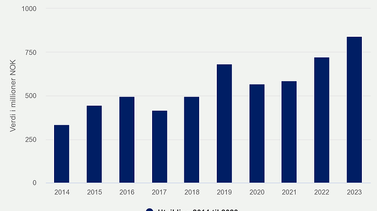 Det er volumet som driver økningen, mens eksportprisen på 47,93 kroner i snitt går tilbake med 19 prosent sammenliknet med august i fjor.