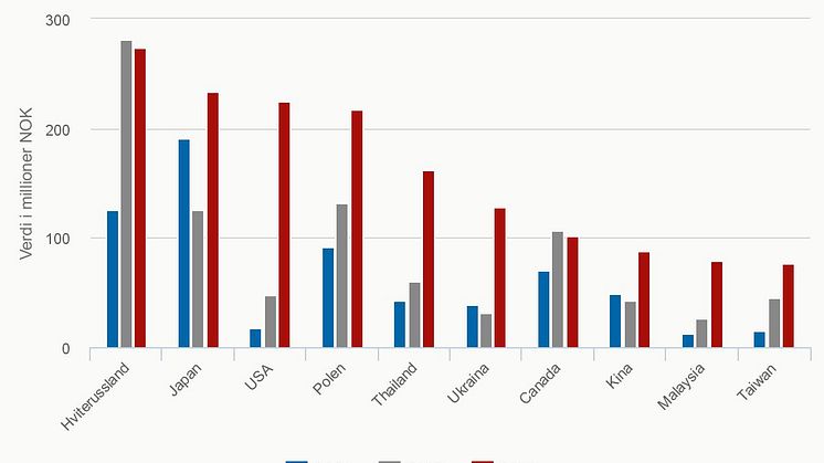 10 største eksportmarkeder for ørret hittil i år - juli 2016