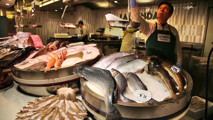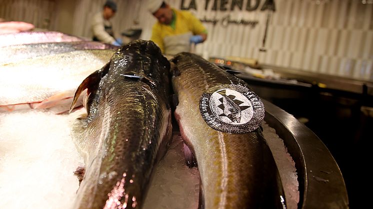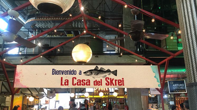 Spanjolene koste seg med skrei under arrangementet «La Casa del Skrei» i Madrid.