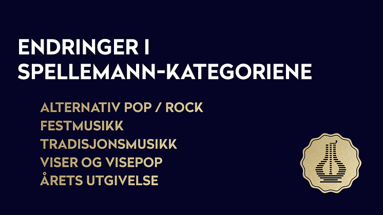 Hvert år går styret i Spellemann gjennom alle kategoriene for den kommende prisutdelingen. I år har en gruppe bestående av uavhengige bransjeaktører laget en innstilling til styret med forslag til endringer i kategoriene. Styret har landet på at det opprettes to nye kategorier, samt at det gjøres endringer i tre eksisterende.