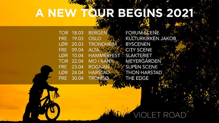 Samme dag som Violet Road slipper sitt åttende album, annonserer de ni konserter og turneen "A new Tour Begins" som starter 18. mars i Bergen og avsluttes på hjemmebane i Tromsø fredag 30. april.