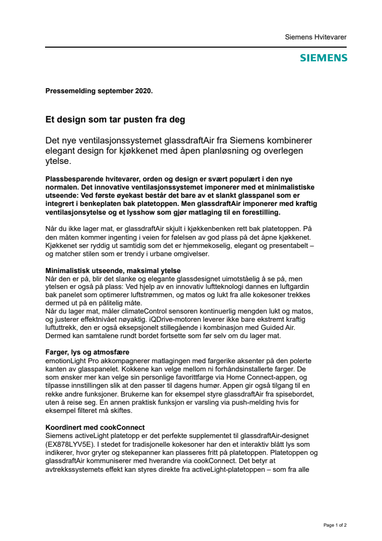 Siemens presenterer glassdraftAir - designet for å forsvinne