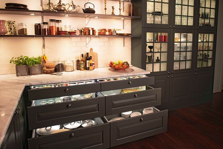 Eksklusivt tradisjonskjøkken med herskapelig preg. Klassiske speilfronter med fylling og markerte profilspor som gir dybdevirkning og skyggespill. Stort tilbehørsutvalg av detaljer som pyntestolper, dekorlister, nostalgihyller og vitrineskap med flere sprosseløsninger – rette og kryssede. Herregaard er utformet i tråd med god gammel byggesikk. Modellen byr på den virkelig store kjøkkenfølelsen.