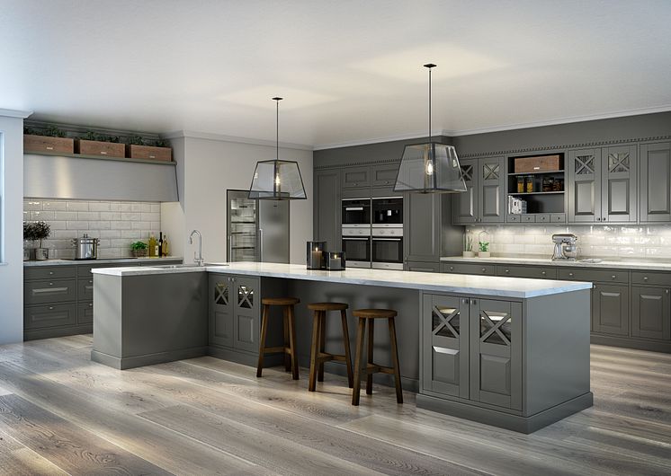 Sigdal kjøkken sin modell Herregaard Inframe er en front med ramme og fylling i hvitmalt MDF. Vitrinedør med eller uten sprosser og 4 glassvalg. Vitrinedør med sprosser har standard "antikk" glass, mens vitrinedør uten sprosser har standard klart glass. Leveres med skrog i hvit melamin. Konseptet Inframe gir kjøkkenet en plassbygd følelse og fås i 15 malte farger.