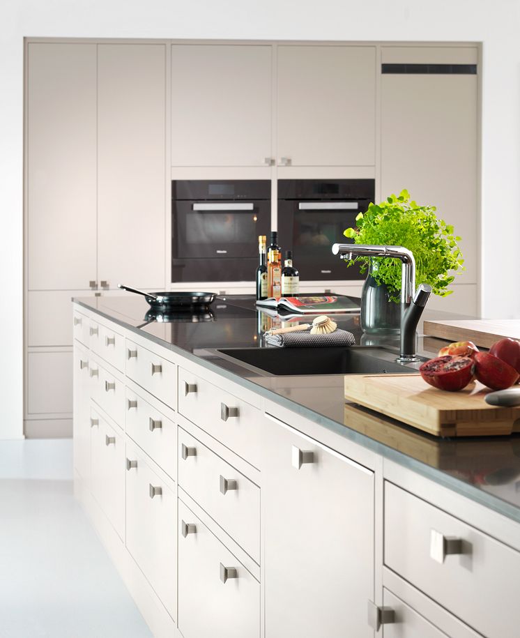 Line Inframe har slett 19 mm front i malt MDF med rett ytterkant. Vitrinedør uten sprosser med 2 glassvalg. Modellen leveres hvitmalt med skrog i hvit melamin som standard. Innramming i foliert MDF i samme farge.
