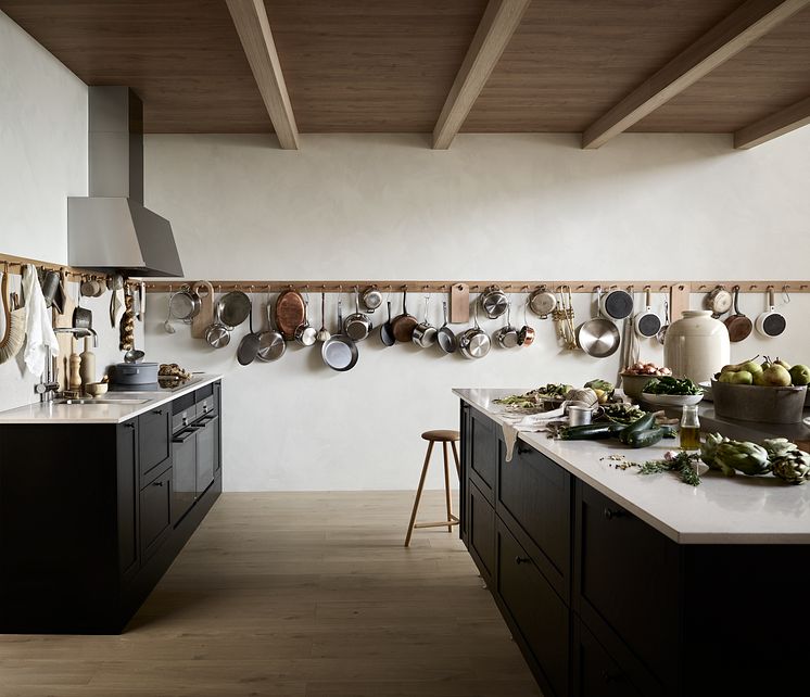 Rustikk og landlig kjøkkenmodell i heltre eik. Front med enkel ramme og slett fylling gjør at du kan variere uttrykket på kjøkkenet fra det helt moderne til det rustikke landlige preget alt etter hvilket tilbehør du velger.