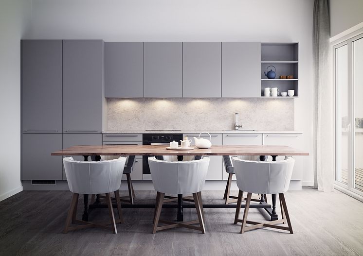 Uno er en ”kameleon-modell” som tilpasser seg omgivelsene og blir akkurat det kjøkkenet du gjør den til. Med 18 farger å velge blant, kan du kreere byens villeste og heftigste matstudio i f.eks. knall orange – eller en dus, diskret og neddempet kjøkkensalong. Slette, renholdsvennlige flater. Fronten kan leveres i 18 forskjellige malte farger med mulighet for fargetilpasset forkant på skrogene. Du kan også blande din egen farge.