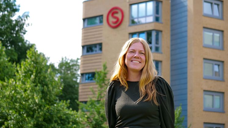Boligdirektør Gunn Kirsti Løkka foran Vestgrensa Studentby