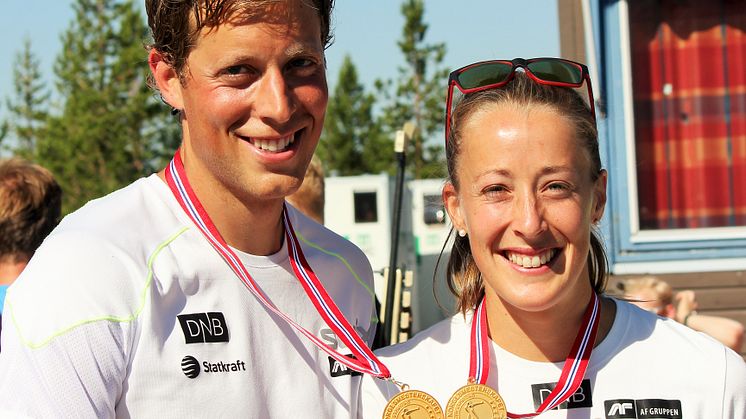 Fanny Horn Birkeland og Lars Helge Birkeland vant hver sin jaktstart under NM rulleskiskyting i dag.