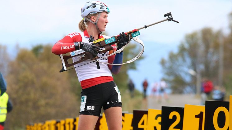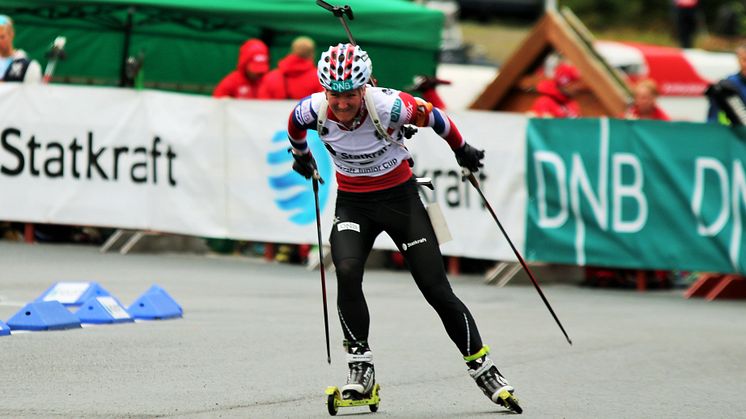 Marte Olsbu tok seieren på kvinnenes sprint under NM rulleskiskyting, mens Erling Aalvik ble vinneren på sprinten for menn.