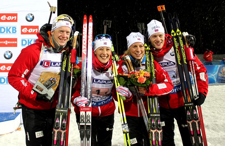 De norske utøverne var fornøyde med sin solide skyting på dagens konkurranse, og skrøt av gode ski på et skiftende føre. - Vi går alltid for gull på stafettene, men en bronse er også kjempebra og vi kunne lett blitt nr. fire i dag, så vi er veldig glade for medaljen, sa det norske laget etter konkurransen.