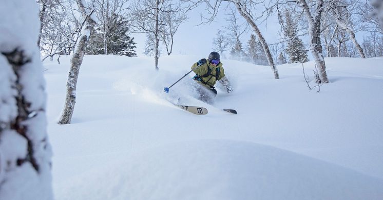 Masse snø og fin skikjøring i Hemsedal. Her Jonatan Eklöf.