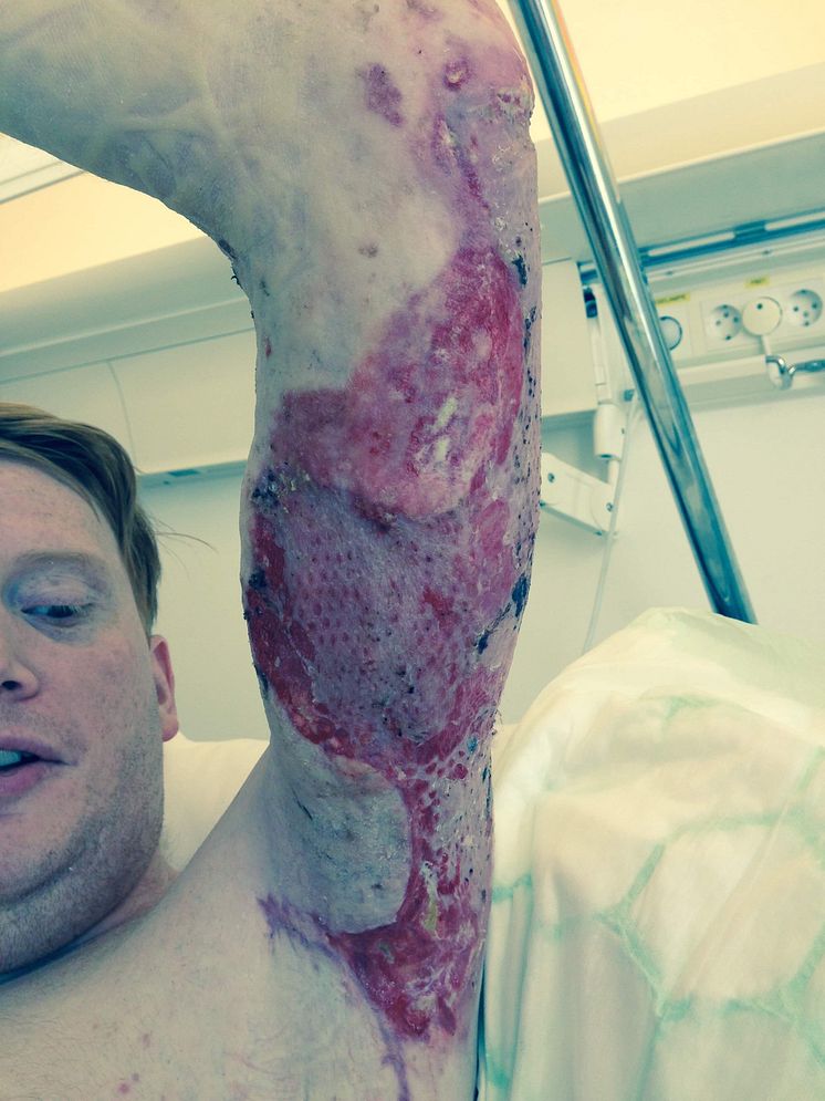 Fredrik Holm ble stygt kvestet i en klemulykke i 2014