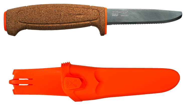 Knivens rustfrie blad er veldig skarpt, og det gripevennlige håndtaket er laget av et korkmateriale som holder kniven flytende hvis du skulle miste den i vannet. Den taggete eggen er spesielt laget for å kutte tau, og det stive bladet har en avrundet spiss som beskytter både deg og utstyret ditt. Den flytende morakniven kan brukes av både høyre- og venstrehendte. Knivens lave vekt gjør den lett å ta med seg, og knivsliren er laget av oransje Hi-Vis-polymer som er lett å se, selv i mørket. Du kan enkelt feste den på beltet og flytevesten med belteklipsen. Les mer om den flytende morakniven på SmartaSaker.