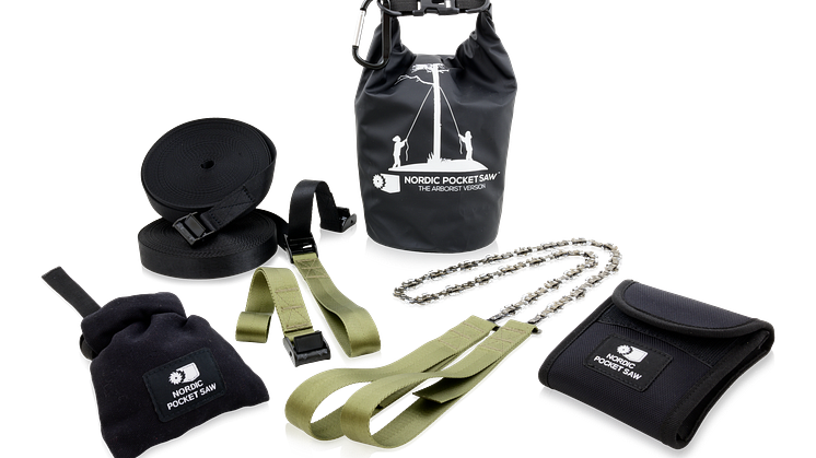Skal du kutte ned noen grener i hagen, men er bekymret for å få de i hodet? Ingen fare! Med dette settet, Nordic Pocket Saw Arborist, kan to personer kutte ned grener samtidig - uten å måtte klatre eller bruke stige. De lange stroppene og den skarpe motorsagen gjør at du, på avstand, enkelt kan kutte ned grener fra 8 meters høyde.