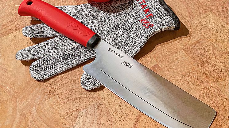 Kjøkkenkniv med en kuttbestandig hanske - for små mesterkokker!