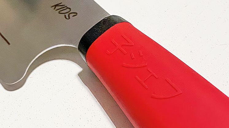 Kniven har en skarp kant og er perfekt for kutting av alle typer råvarer. Det slitesterke håndtaket er laget av gripevennlig plast, og de japanske symbolene som er trykt på håndtaket er med på å gi et enda bedre grep. Kniven er ganske skarp, og derfor har den flere smarte sikkerhetsfunksjoner. Det skarpe bladet er merket med en strek nederst, som gjør det enkelt å se den skarpe siden av kniven. Hælen på bladet er formet slik at barnet ikke sklir fremover med hånden, og i tillegg er kniven sløv foran for å unngå knivskader. Kniven skal bare brukes under oppsyn av en voksen og av barn som er gamle nok til å håndtere en skarp kniv. Les mer om Satake barnekniv med kuttbestandig hanske på SmartaSaker.