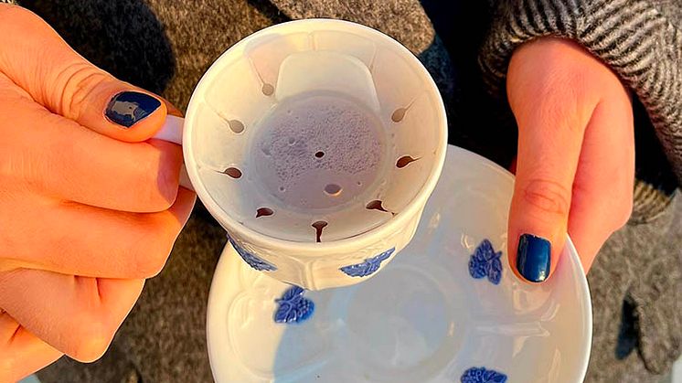 Med Drinkis kan du nyte et bredt utvalg av drikker - fra varm kaffe og te til kalde drikker, nypesuppe og yoghurt - uten å bekymre deg for søl. Takket være det sentralt plasserte hullet renner væsken som blir til overs, jevnt tilbake i glasset.