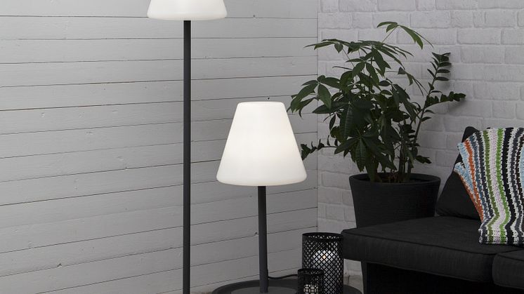 Lys opp terrassen eller balkongen uten å måtte legge ut en ledning. Bordlampen drives av et innebygd og oppladbart batteri, slik at du enkelt kan plassere den ute på terrassen, balkongen eller i hagen.
